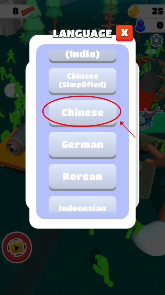 若要切换为中文显示,可进入“language”相关设置界面,从中选取“Chinese”选项完成语言调整。