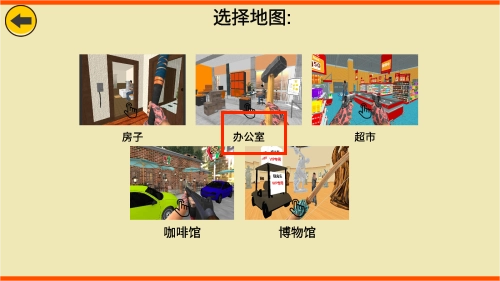2、在场景选择页面找到办公室主题,点击确认加载逼真的办公环境地图。