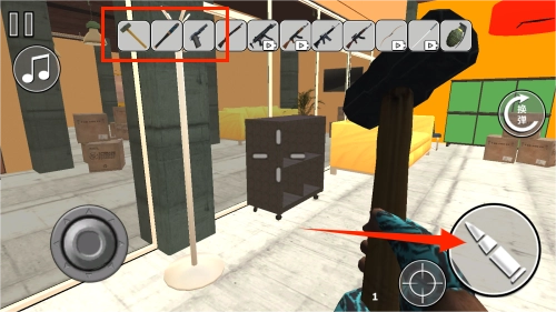 3、在顶部工具栏中选择锤子、炸弹之类的道具,对房间里的物品进行破坏操作。