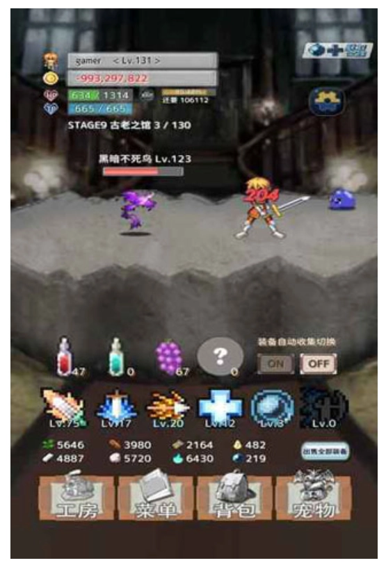 可以选择在无尽的迷宫场景中挂机,获取那里独有的羽毛、石板与无限粉尘;也可以通过挂机进行转生操作,以此来收集黑色的宝珠道具。