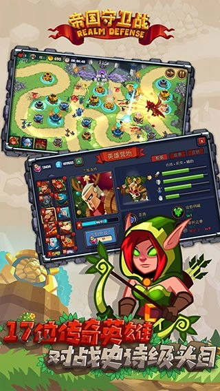 帝国守卫战最新版是一款具有欧美动漫风格的塔防类游戏,该游戏整体采用的是Q版卡通的美术画风3D引擎技术,将画面中的场景、人物、细节都描绘的十分精致细腻,十分可爱,并且玩法也是非常丰富,充满各种乐趣。游戏内主要讲述了兽人、哥布林、胡狼族、巫师等105种怪物组成的敌军,控制了傲落王国、峡湾圣地等多个领地,世界岌岌可危。