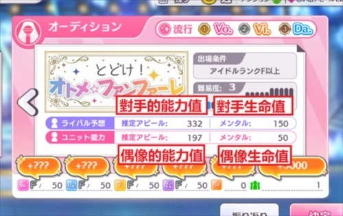 在试镜过程中,一旦生命值降至0就会直接导致试镜失败,而SP的作用是在【振り返り】环节里用于学习技能。