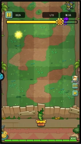 在游戏里也能点击阳光来收集,等阳光收集满了,就能解锁新植物,或是对已有的植物进行升级。