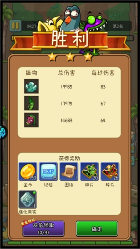 当所有的僵尸都被清除干净,你就能赢得这场战斗,并且在胜利的奖励中,会包含大量的植物碎片供你收集。