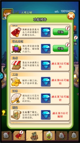 在小镇中可以升级植物,解锁强力效果以及新强化卡。