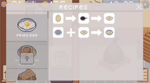 游戏内设有食谱系统,玩家可依据系统提供的配方制作各类菜肴,丰富餐品选择,同时还能对经营的餐厅进行等级提升。