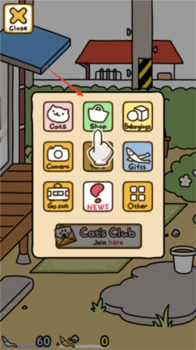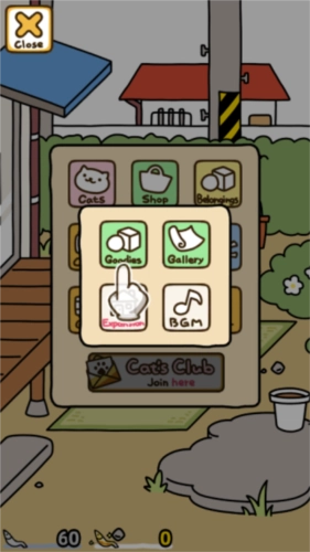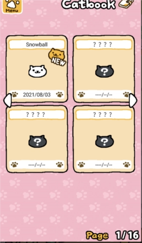 玩家需要通过吸引猫咪来填充自己的猫咪簿,点击左上角即可进入菜单界面。