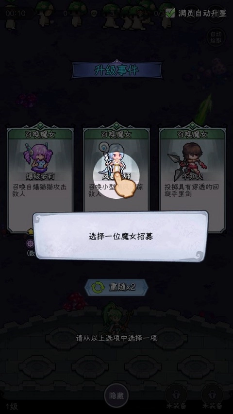 丰富多样的女巫角色阵容:你可以招募并培养不同流派的女巫,每个女巫都具备独特的技能以及专属的升级路线。