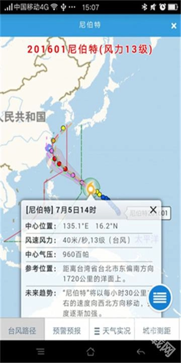台风路径:呈现当前西北太平洋台风的路径信息,还能查询历史台风情况,以及叠加云图、雷达图等气象数据。