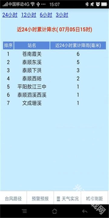 降雨情况:公布温州自动气象站所监测到的过去24小时内的累计降雨量数据。