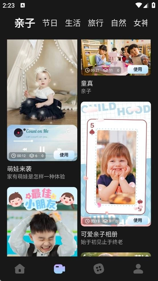 可以利用应用里的各类视频模板来创作你心仪的视频,让你的视频变得更加绚丽多彩。