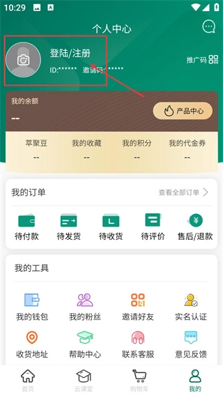 在个人中心页面,点击【登录/注册】板块,即可进入登录注册界面。