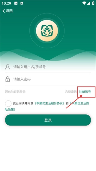 3、在登录界面,要是还没有账号,点击【注册账号】按钮,就能进入注册界面。