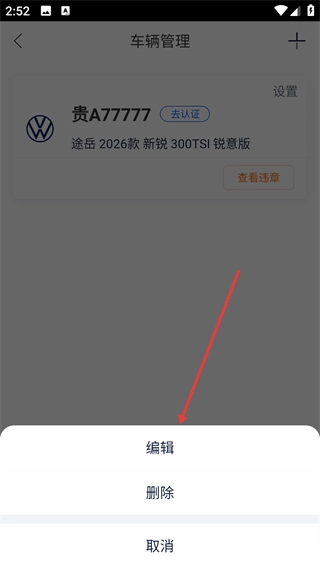 3、在操作菜单里选择【编辑】选项,即可进入车辆编辑页面。