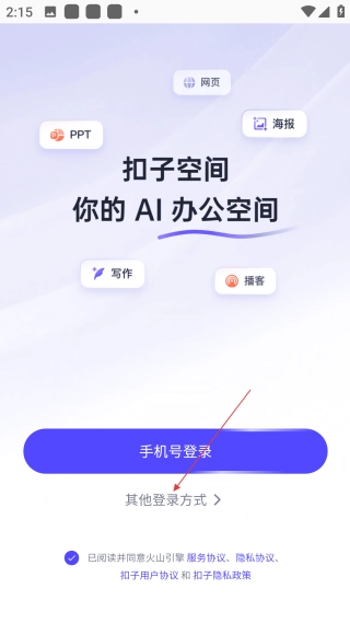 1、在扣子空间登录页面,点击【其他登录方式】按钮,即可展开更多登录选项。
