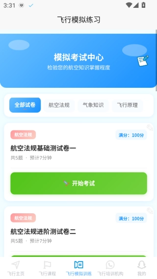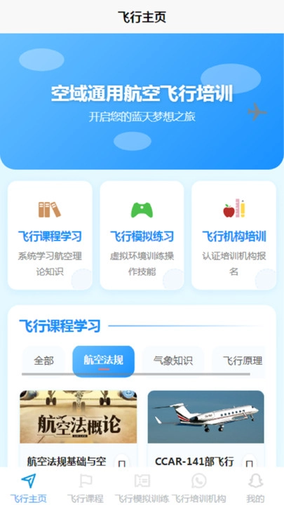 1、首页整合了系统化的飞行课程体系,同时配备了专项训练和模拟操作功能。