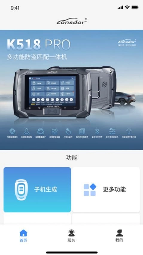 1、接着打开朗仁(Lonsdor)软件,在首页即可看到子机生成及众多功能选项;