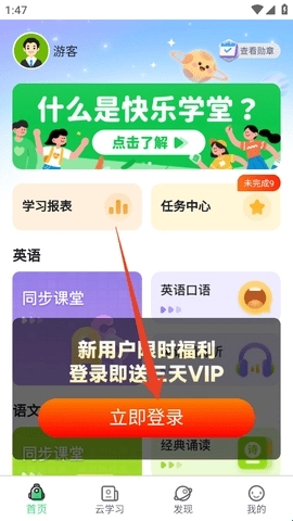 快乐学堂学生端是专门面向1-6年级小学生开发的课后学习平台,平台汇聚了海量优质学习资源,所有内容均紧密贴合教材,完全不脱离课本知识体系。此外,平台还设有丰富的思维闯关训练与口语练习模块,能够从多个维度对孩子进行学习辅导,助力他们稳步提升学业成绩。