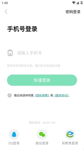 2、之后可以用手机号登录,也能通过QQ、微信或者和教育进行登录。