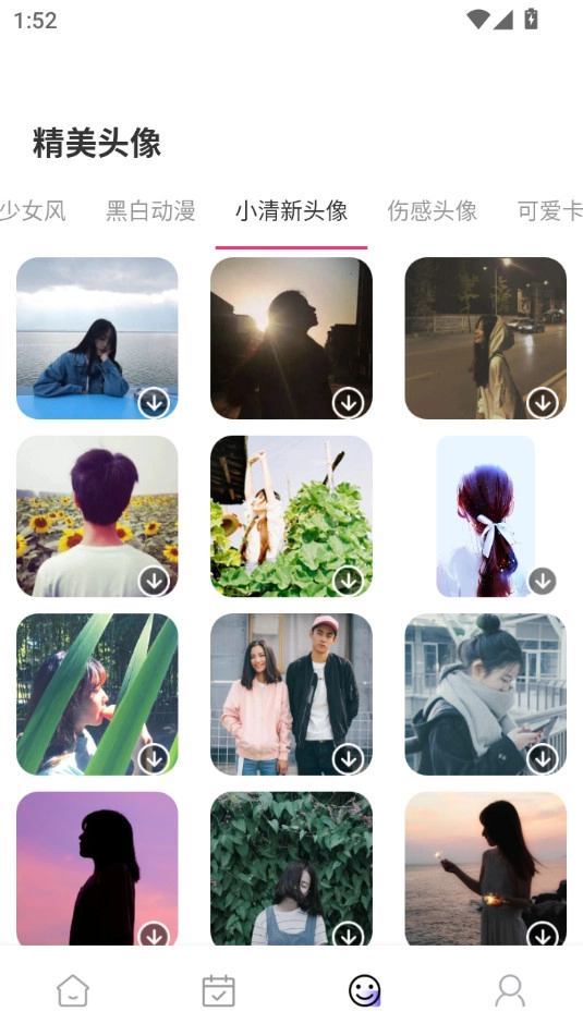 用户能够依据自身需求的类型开展分类与搜索操作,例如输入关键词便能迅速定位到这类壁纸、头像等资源。
