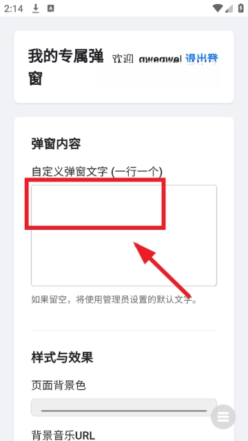 1、在自定义弹窗的文字输入框中填写弹幕内容,若此处为空,则会自动采用管理员预先设置的默认文字。