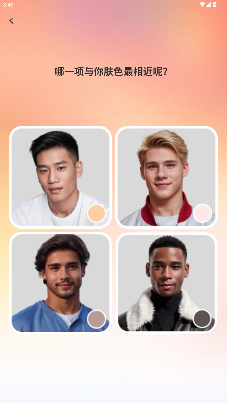 3、在选定性别之后,接下来可以挑选面容方面的特征,像肤色、眼睛、鼻子、下巴的形态等都包含在内。