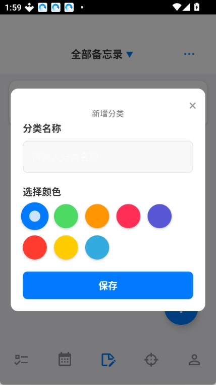 3. 填写新分类的名称,挑选一个颜色,点击“保存”按钮,即可完成新分类的创建。
