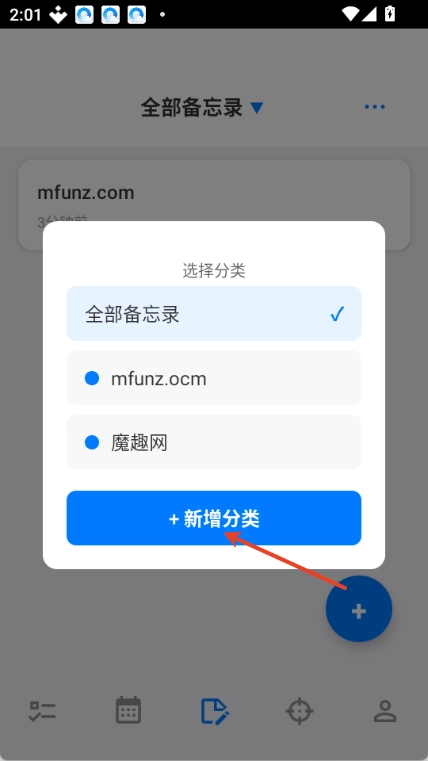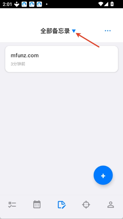 1.点击全部备忘记录向下三角形图标。