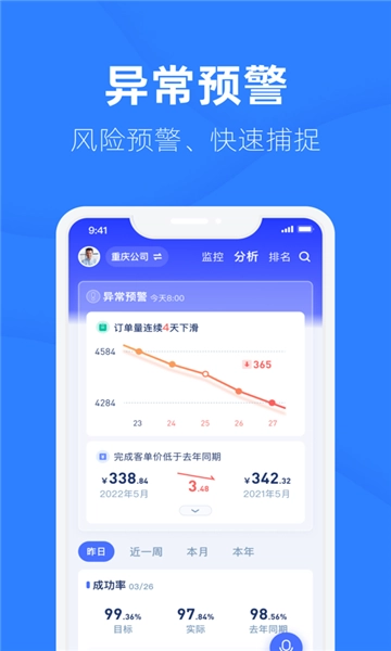 3.通过异常预警功能,能够详细查看与往年相比的增减变化情况,以及当前数据与目标成功率之间的差距。