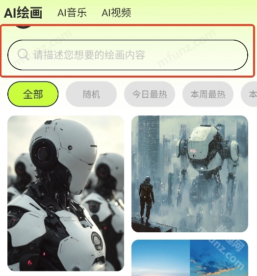 6、在AI绘画界面的搜索框中输入想要的模板,就能快速生成相应内容