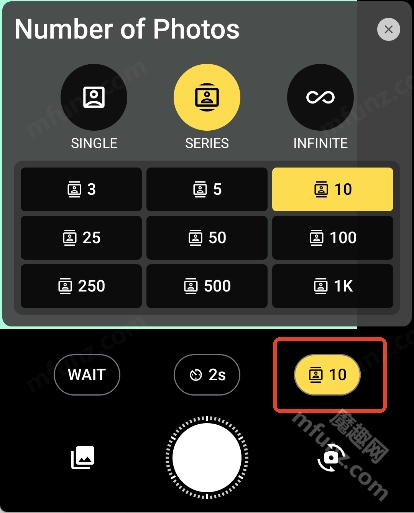 7、右边的按钮是修改连拍照片张数
