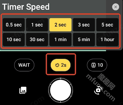 6、点击中间的2s可自定义设置连拍间隔时间