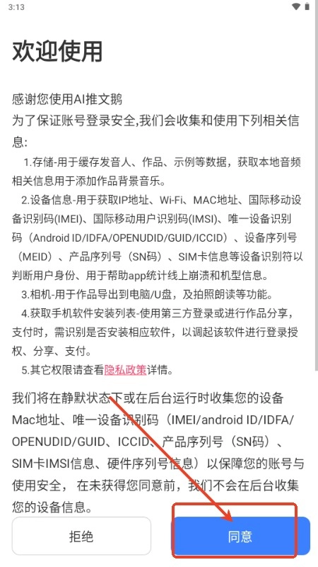 1、点击进入AI推文鹅,同意软件政策;