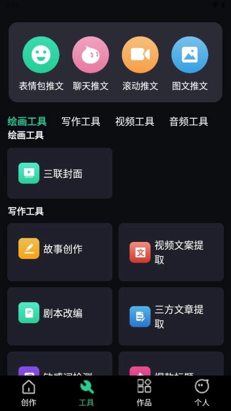 汇聚绘画、写作、视频编辑、音频制作等多功能辅助神器,配备海量模板资源任你选用。