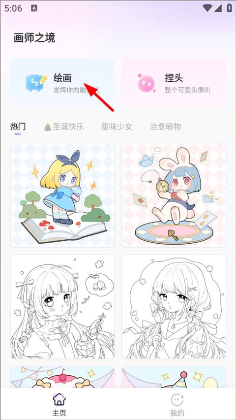 1、打开画师之境,点击左上角绘画。