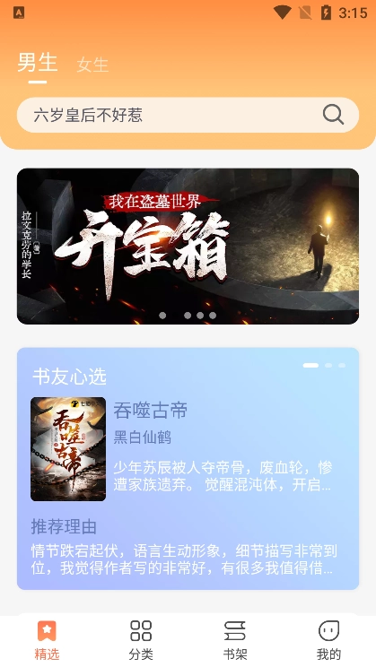 为了让用户能更快速地找到自己喜欢的小说,页面也设置了清晰的分类,以便用户使用。