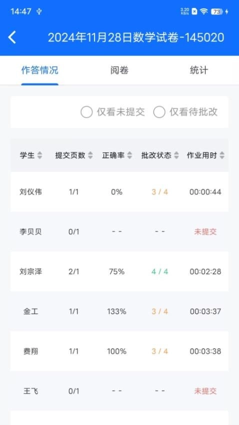 实时追踪作业批改进度,随时掌握自身批改情况,助力高效完成任务。