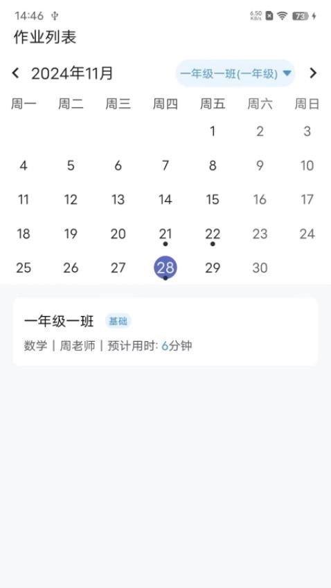 以日历形式向用户展示作业列表,方便用户通过选择日期来查看对应作业。
