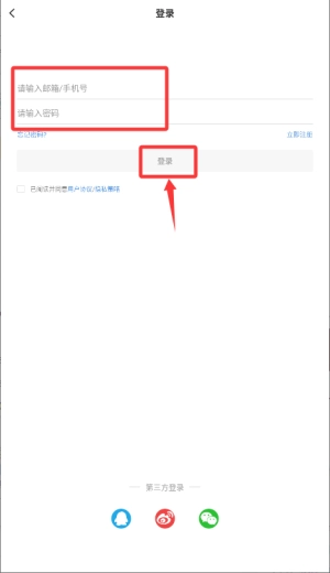 3、在登录界面输入邮箱或手机号以及与之对应的密码,即可完成账户登录的操作。