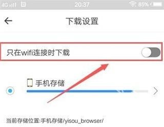 4、打开“设置”窗口后,找到“只在WIFI连接时”这一栏,将其开启就可以了。