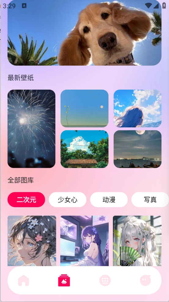 3、壁纸页面对壁纸进行了细致分类,涵盖二次元、少女心、动漫等多种类型。