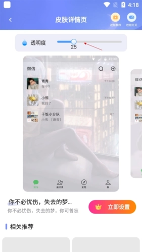 3、最后左右滑动就能调节皮肤的透明度。