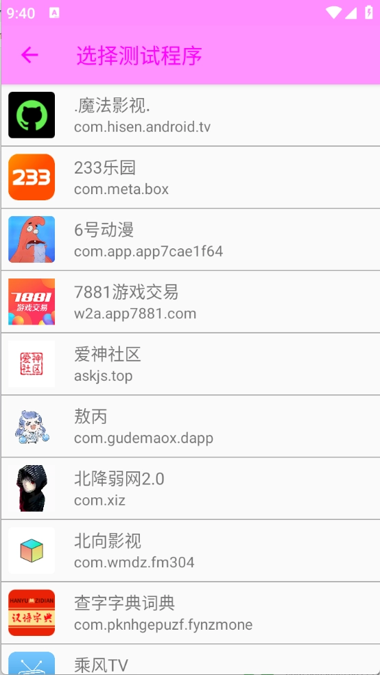 3、选择要测试的应用。