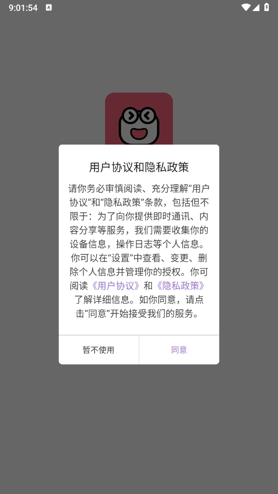 1、用户在安装软件,同意相关协议服务和隐私政策。