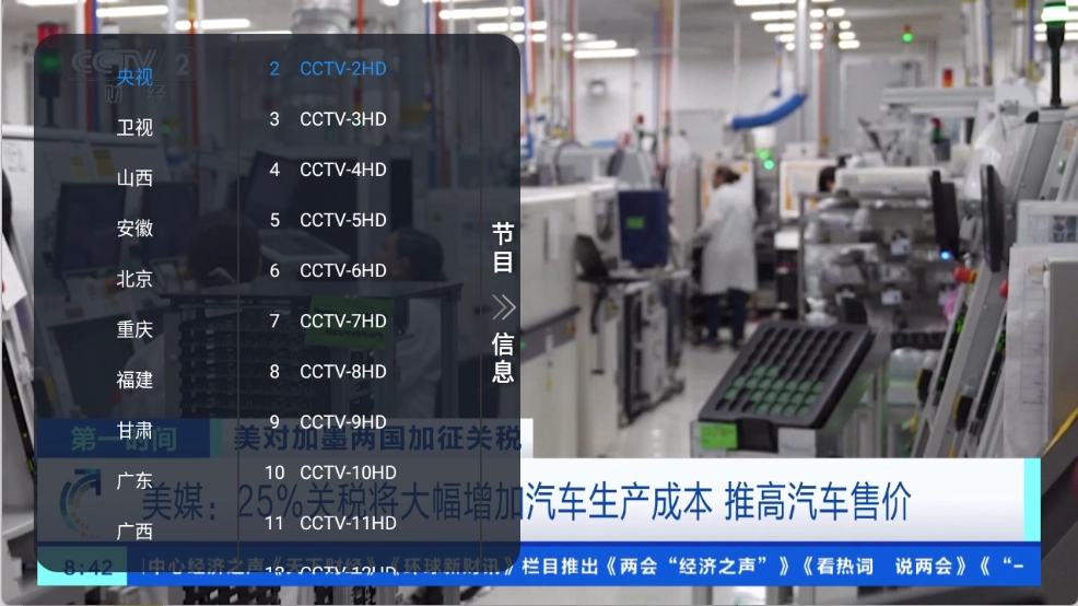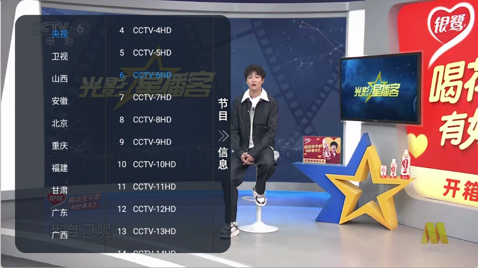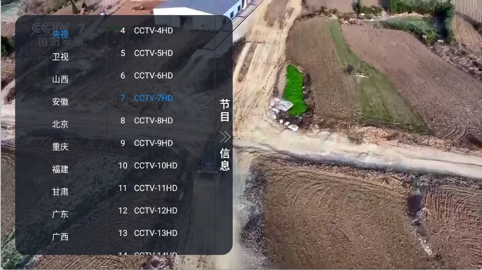 进入首页后,点击屏幕上的任意位置,左侧栏就会显示出众多电视频道。