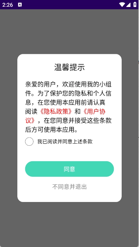 1、用户首先需进入本站的“我的小组件”页面,查看并同意隐私政策及用户协议。