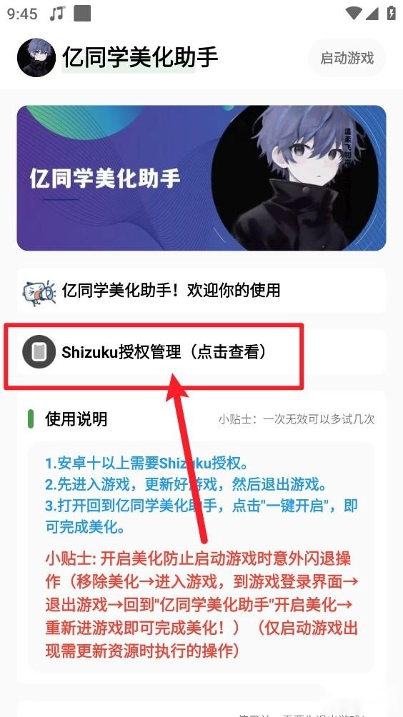 2、操作完成后进入主页,找到并打开Shizuku授权管理工具,依次完成安装与授权步骤;需要注意的是,安卓10及以上版本的系统需要通过Shizuku进行授权。