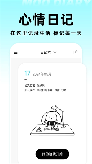 MOO日记提供文字与图片记录心情故事的功能,通过天气、心情标签的对话式引导,助力你轻松坚持写日记,留存成长印记。