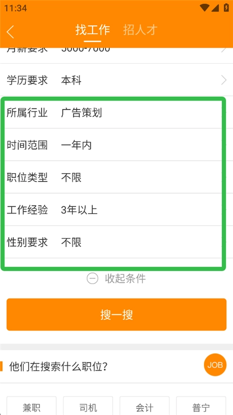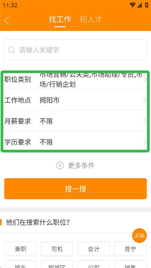 2、输入职位相关的关键词,再依据自身实际情况挑选合适的职位,同时选定期望的工作地点、对月薪的具体要求等信息。