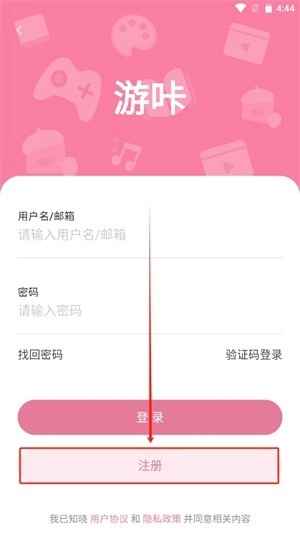 2、之后跳转到登录界面,点击【注册】按钮即可进入账号注册界面。